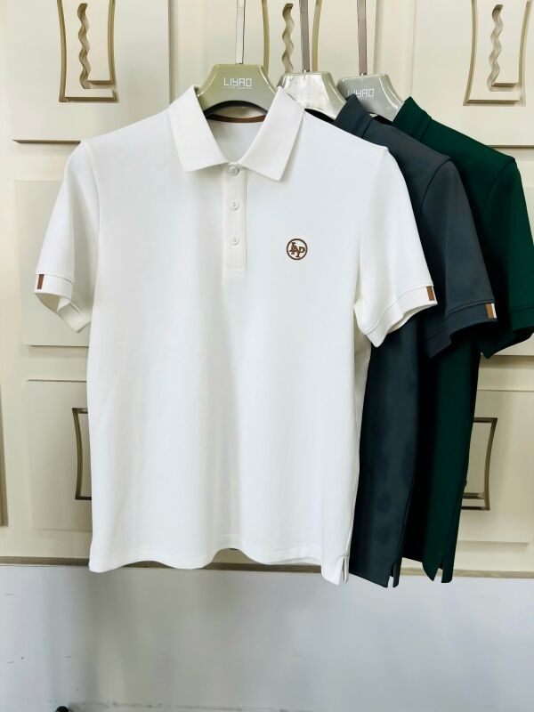 مجموعة البولو الرجالية الفاخرة | أكمام متباينة باللون الأبيض/الرمادي/الأخضر مع تطريز رائع 24