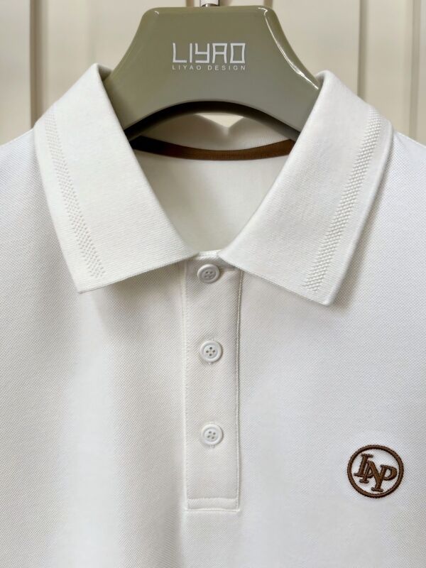 مجموعة البولو الرجالية الفاخرة | أكمام متباينة باللون الأبيض/الرمادي/الأخضر مع تطريز رائع 10