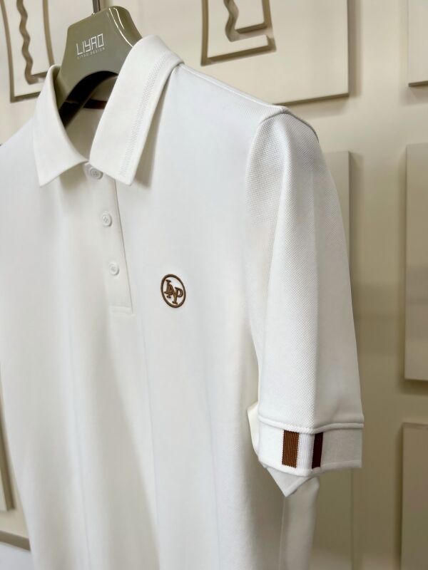 مجموعة البولو الرجالية الفاخرة | أكمام متباينة باللون الأبيض/الرمادي/الأخضر مع تطريز رائع 22